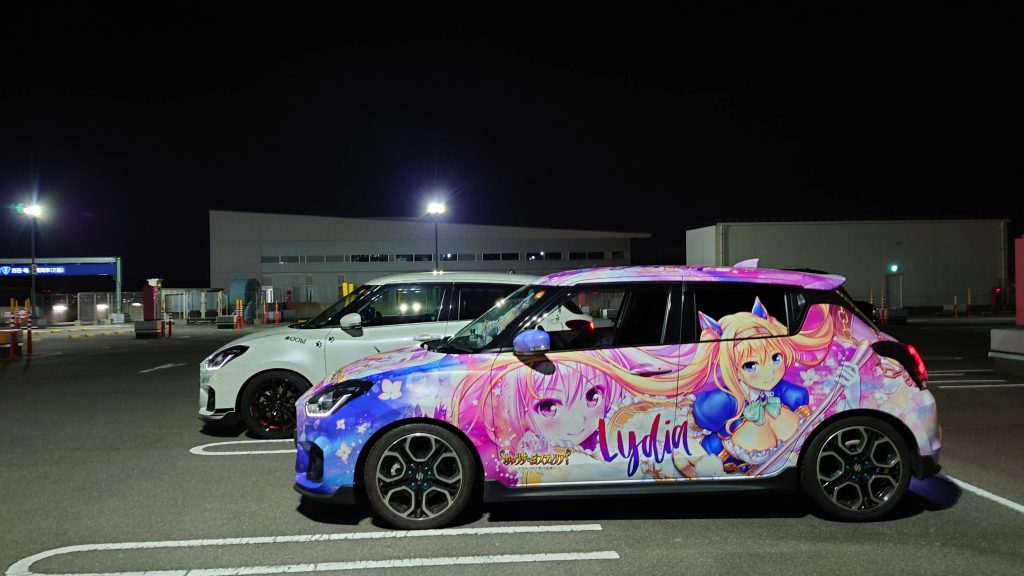 いま思うとその間に、きっかけとなったスイスポ痛車のオーナーさんに痛車イベントに誘っていただいたり、痛車イベントで出会ったオーナーさんから貴重な情報をいただいたり、私が痛車に乗り始めてすぐに、すんなりと痛車イベントに参加して楽しめる環境が構築されていた気がします。